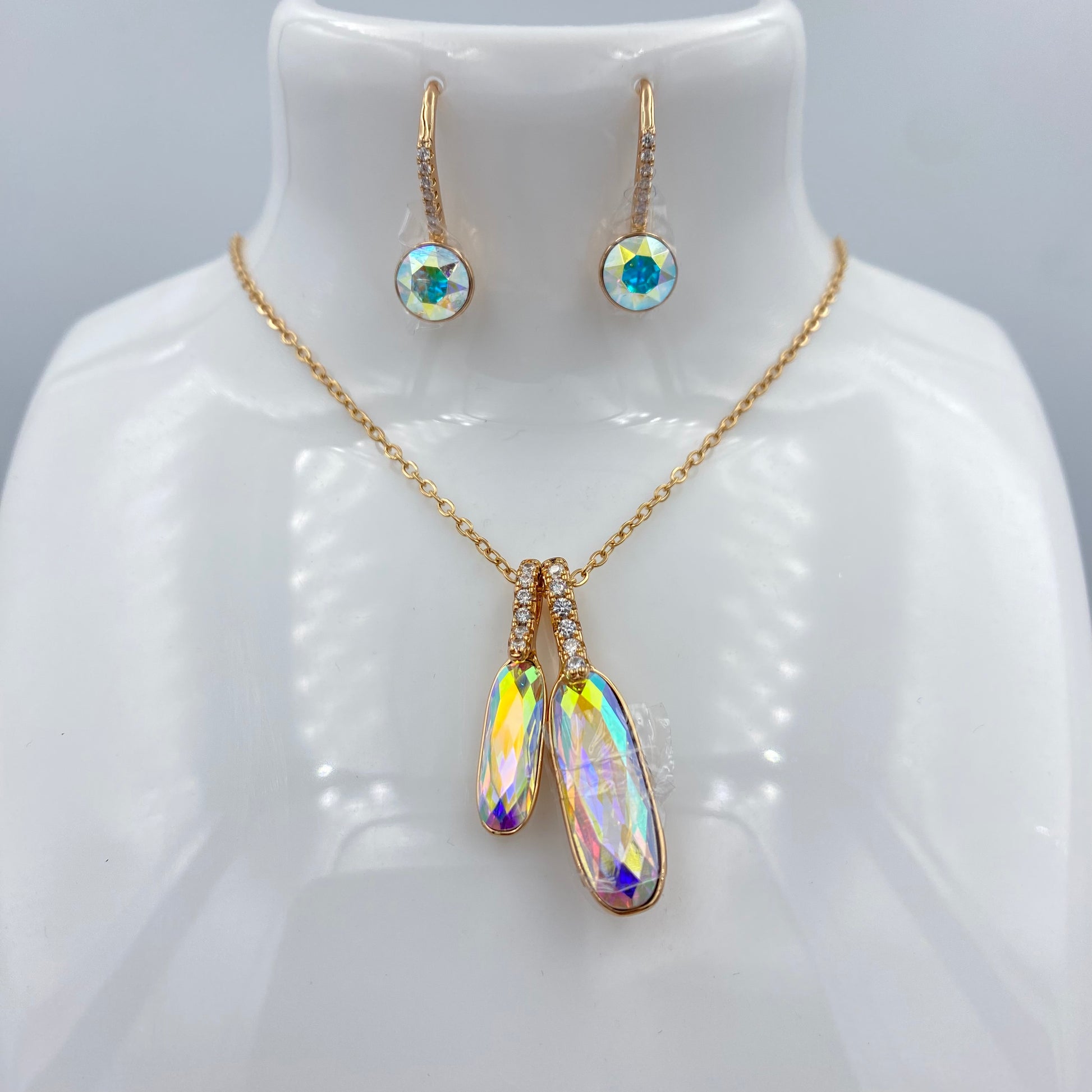 Set Collar y Aretes de alta calidad en color oro, elaborado en acero quirúrgico y chapado en oro de 14k