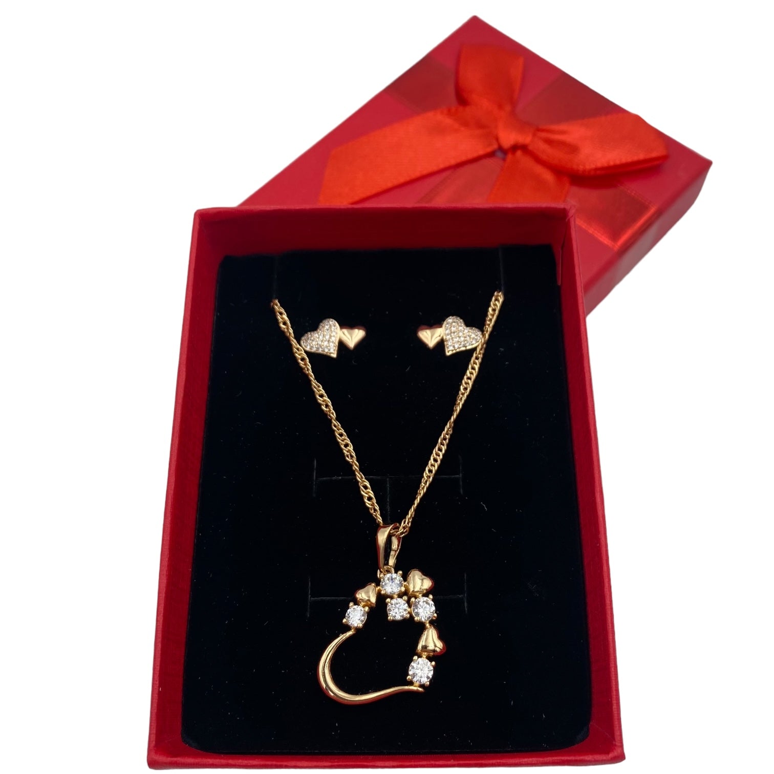 Set Collar y Aretes de alta calidad en color oro, elaborado en acero quirúrgico y chapado en oro de 14k