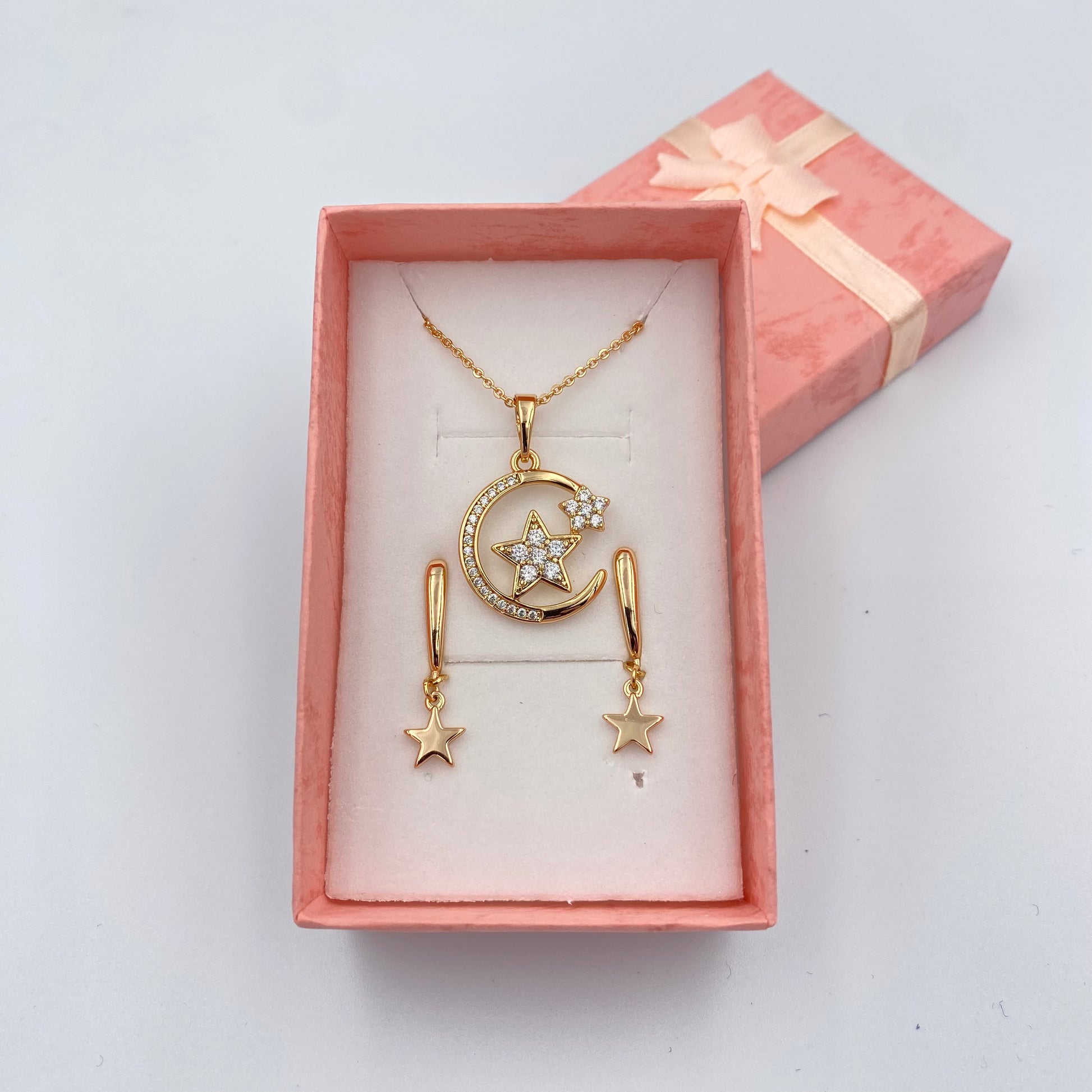 Set Collar y Aretes de alta calidad en color oro, elaborado en acero quirúrgico.